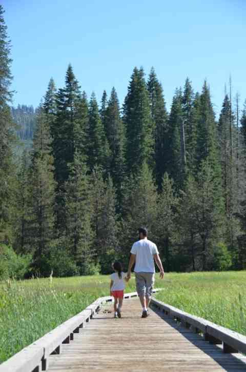 The tired father walked quietly so she wouldn’t know that he was following her. He saw the school bus pull up and quickly hid behind a tree. A few other children were waiting at the side of the road.