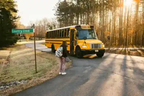 As Abigail hopped onto the school bus, Jeffrey discreetly followed behind, his concern growing with every step. Once Abigail settled into her seat, the bus driver approached her and stopped her from boarding the bus.